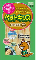 ライオン【ペットキッス・超小型犬用】18本入り価格: 312円レビュー評価: 5.0 レビュー数:1 ■成分:粗たん白質72.0%以上、粗脂肪5.0%以上、粗繊維2.0%以下、粗灰分5.0%以下、水分15.0%以下エネルギー100gあたり約330kcal ■原材料:牛皮、糖類(キシリトール等)、カルシウム、りんご抽出物 おいしく食べながら愛犬のお口の健康を守ります ●食べているうちにお口の中をキレイにし、口臭などのトラブルを防ぎます。●牛皮を加工してできた特殊なブラッシング構造により、歯垢や歯の汚れを除去。●さわやかな息のためにフラボノイド(りんご抽出成分)配合。●健康でキレイな歯のためにキシリトール配合。●ブラッシングカルシウム配合で刷掃力がアップし、口が小さく歯並びの複雑な超小型犬の歯もき |